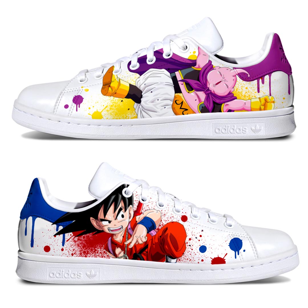 Customisations sur baskets Stan Smith de Son Goku Super Saiyan.
