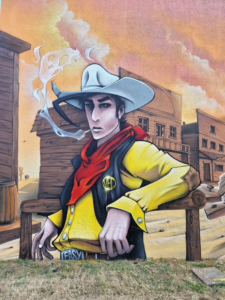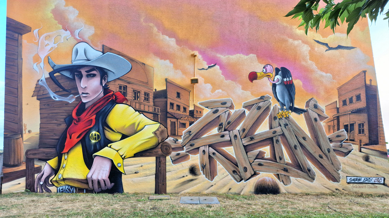 Graffiti « Lucky Luke » Fresque graffiti réalisée à Saintes avec EASY sur le thême de « Lucky Luke ».